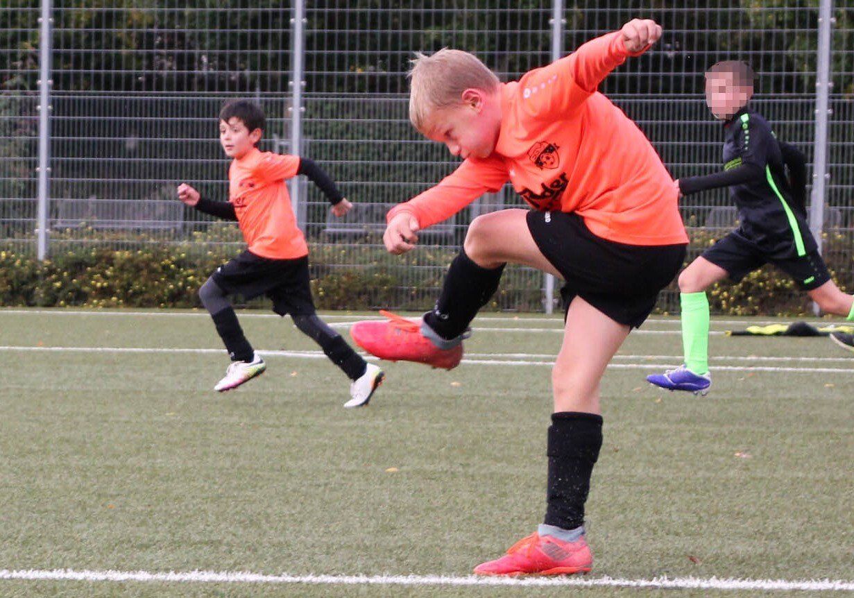 Bei denen ging es dann auch gleich zur Sache. Die neuformierte Mannschaft hatte in dieser Aufstellung noch nie zusammengespielt. Deshalb wunderten sich viele Zuschauer, wie toll das Zusammenspiel der Mannschaft von Beginn an funktionierte. Samy war auf der zentralen Position im Mittelfeld die Schaltzentrale im Angriff nach vorne. Er verteilte die Bälle mustergültig zu seinen Mitspielern, die sich immer wieder sehr schön freigelaufen hatten. In der Defensive sorgte er dafür, dass nahezu jeder Angriff der Raidwänger von uns abgefangen werden konnte. Durch den großen Druck, den wir auf die Abwehr der Gegner aufbauen konnten, blieb einem Abwehrspieler nichts mehr anderes übrig, als ins eigene Tor einzuschieben. Nach einigen vergebenen Chancen in der Anfangsphase, war der Bann nun gebrochen. Jetzt lief unsere Tormaschine zur Hochform auf. Zweimal Samy, Luca und Irina erhöhten auf 5:0. Die Angriffe unserer Gegner fanden nahezu nicht statt. Dafür sorgte bereits Defrim ganz vorne, der den Spielaufbau immer wieder stören konnte. In der Abwehr standen mit Friedrich und Matteo zwei Spieler, die nicht nur im Zweikampf glänzen konnten, sondern auch in der Spieleröffnung immer kluge Pässe spielen konnten. Noah, Luca und Irina waren dabei meistens die Empfänger der Zuspiele, und schon wurde es immer wieder gefährlich für das Tor der Raidwänger. Auch als unsere Ersatzspieler eingewechselt wurden, war kein Unterschied zu merken. Jetzt steuerte Lasse auf der zentralen Position gekonnt das Spiel. Magnus und Justin hielten die Abwehr zusammen, Filip sorgte auf der linken Seite immer wieder für schöne Flanken vors Tor. Durch Tore von Matteo, Defrim und Samy erhöhten wir bis zur Halbzeitpause auf 8:0.